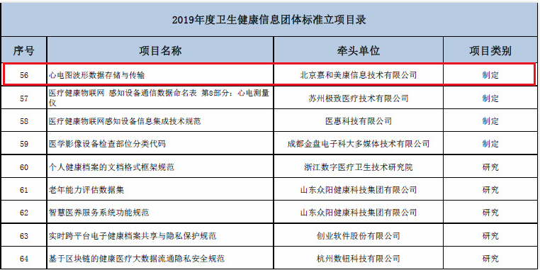近日,中國(guó)衛(wèi)生信息與健康醫(yī)療大數(shù)據(jù)學(xué)會(huì)衛(wèi)生信息標(biāo)準(zhǔn)專業(yè)委員會(huì)在海南省??谑薪M織召開學(xué)會(huì)信息標(biāo)委會(huì)委員大會(huì)暨學(xué)術(shù)交流會(huì),會(huì)議上發(fā)布了2019年度衛(wèi)生健康信息團(tuán)體標(biāo)準(zhǔn)立項(xiàng)項(xiàng)目。本次,衛(wèi)生健康信息團(tuán)體標(biāo)準(zhǔn)獲批項(xiàng)目共64項(xiàng),其中由嘉和美康申報(bào)的《心電圖波形數(shù)據(jù)存儲(chǔ)與傳輸標(biāo)準(zhǔn)》獲批立項(xiàng)。