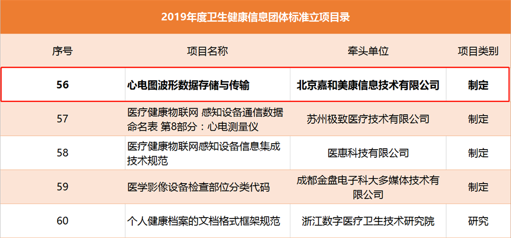 12月,2019年度衛(wèi)生健康信息團(tuán)體標(biāo)準(zhǔn)立項(xiàng)項(xiàng)目發(fā)布。其中,由嘉和美康申報(bào)的《心電圖波形數(shù)據(jù)存儲(chǔ)與傳輸標(biāo)準(zhǔn)》獲批立項(xiàng)。該項(xiàng)目的獲批,全面體現(xiàn)了嘉和美康創(chuàng)新意識(shí)、技術(shù)研發(fā)能力在行業(yè)中的引領(lǐng)作用。