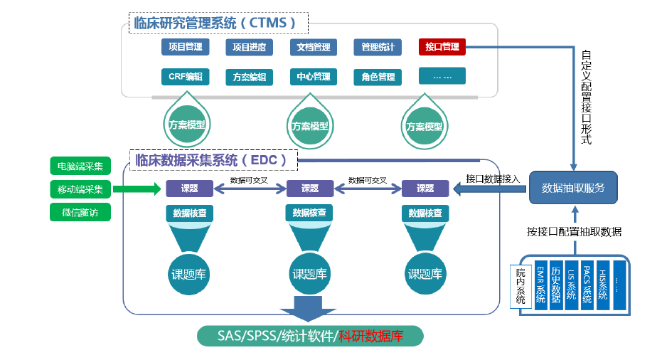 在臨床研究中,數(shù)據(jù)采集是一項(xiàng)重要環(huán)節(jié)。數(shù)據(jù)能被準(zhǔn)確、及時、規(guī)范地采集可以顯著提高研究質(zhì)量,縮短研究的周期。傳統(tǒng)基于紙質(zhì)CRF的數(shù)據(jù)采集和管理周期較長,無法有效地保證數(shù)據(jù)的可靠性和安全性。嘉和美康臨床研究平臺(EDC)可有效解決臨床研究過程中數(shù)據(jù)采集與管理的問題,系統(tǒng)以研究方案為導(dǎo)向,實(shí)現(xiàn)受試者招募、入組登記、研究數(shù)據(jù)收集、數(shù)據(jù)質(zhì)量審核、數(shù)據(jù)清洗、數(shù)據(jù)導(dǎo)出的全流程信息化管理,提高研究效率和數(shù)據(jù)質(zhì)量,加快科研產(chǎn)出。
