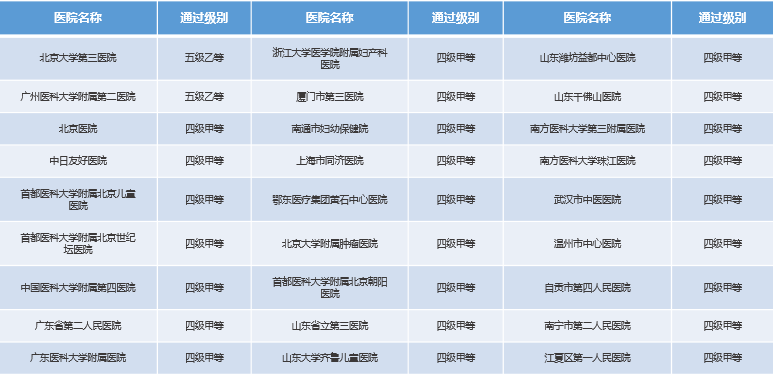 此次,在嘉和美康的產(chǎn)品和技術(shù)支持下,共有15家醫(yī)院順利通過2019年度國家醫(yī)療健康信息互聯(lián)互通標準化成熟度的測評。其中,首都醫(yī)科大學(xué)附屬北京朝陽醫(yī)院、北京大學(xué)腫瘤醫(yī)院、溫州市中心醫(yī)院、淮坊市益都中心醫(yī)院、山東省立第三醫(yī)院、濟南市兒童醫(yī)院、山東第一醫(yī)科大學(xué)第一附屬醫(yī)院、武漢市江夏區(qū)第一附屬醫(yī)院、武漢市中醫(yī)院、南方醫(yī)科大學(xué)珠江醫(yī)院、南方醫(yī)科大學(xué)第三附屬醫(yī)院、南寧市第二人民醫(yī)院、自貢市第四人民醫(yī)院等13家醫(yī)院通過四級甲等測評,瑞安市人民醫(yī)院、贛南醫(yī)學(xué)院第一附屬醫(yī)院通過四級乙等測評。截至目前,嘉和美康已累計助力全國27家醫(yī)療機構(gòu)通過互聯(lián)互通高級別測評,包括北京大學(xué)第三醫(yī)院(五級乙等)、廣州醫(yī)科大學(xué)附屬第二醫(yī)院(五級乙等)。具體名單如下: