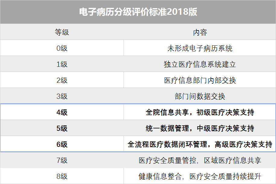 在國家衛(wèi)生健康委員會印發(fā)的《關(guān)于進一步推進以電子病歷為核心的醫(yī)療機構(gòu)信息化建設(shè)工作的通知》中要求:到2020年,轄區(qū)內(nèi)所有三級醫(yī)院要達到電子病歷應(yīng)用水平分級評價4級以上。即醫(yī)院內(nèi)實現(xiàn)全院信息共享,并具備醫(yī)療決策支持功能。