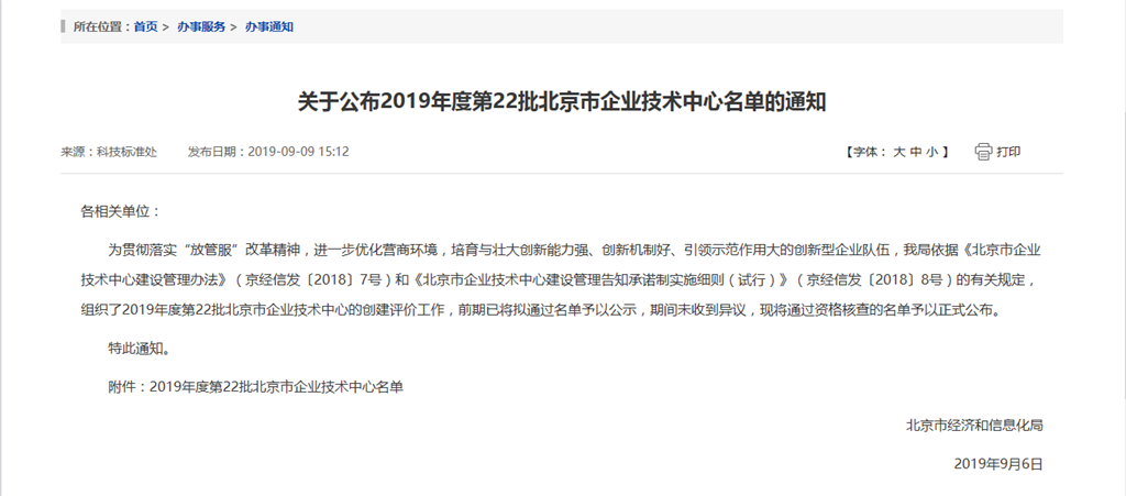 2019年度第22批北京市企業(yè)技術(shù)中心部分名單